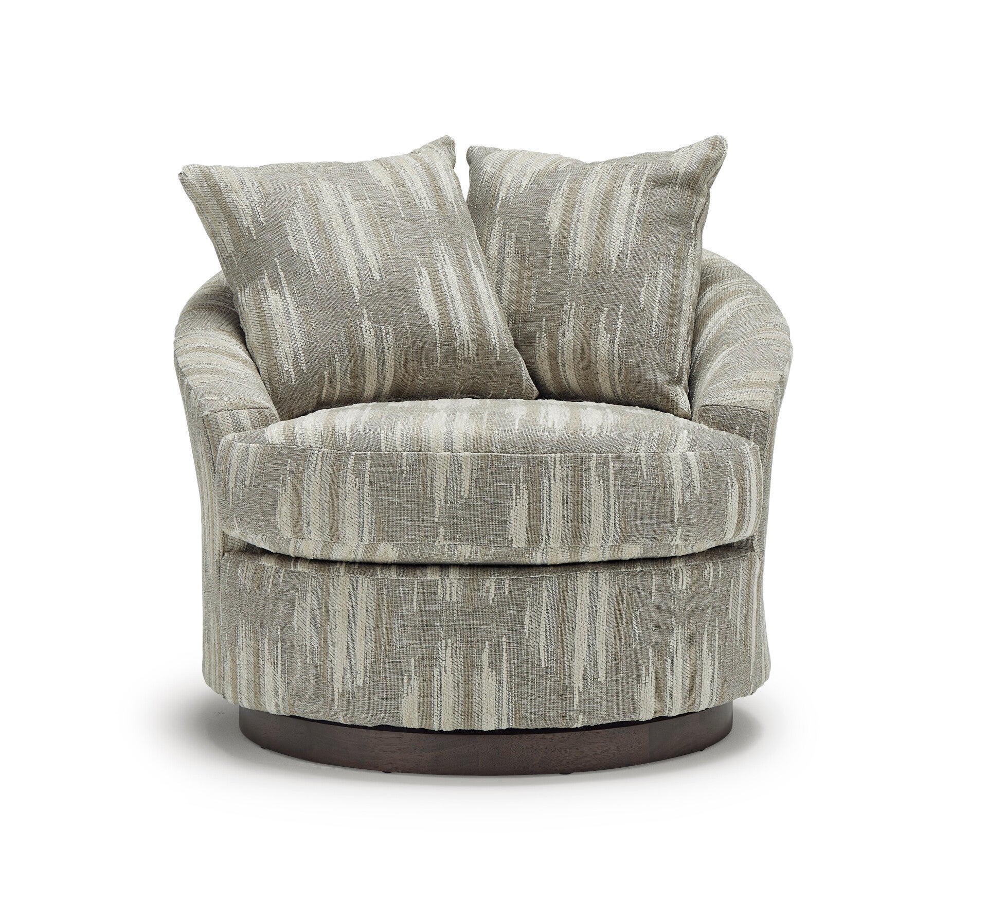 Curved barrel‑back design that delivers a cozy, wraparound feel