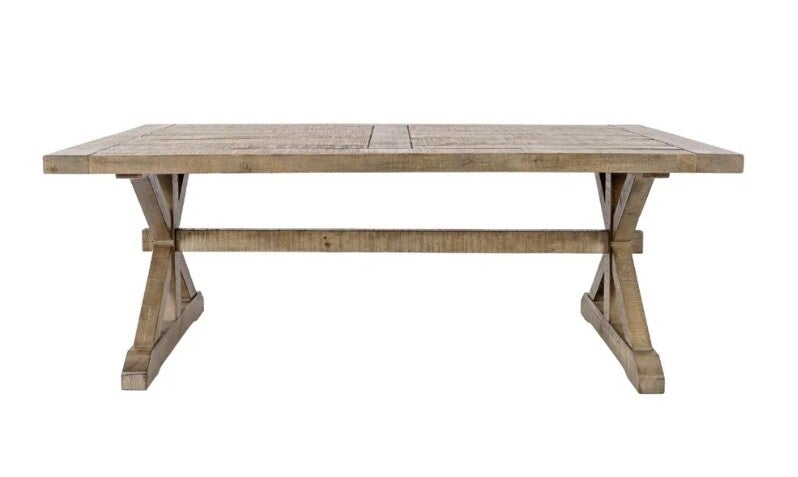 Metal frame paired with a warm wood top